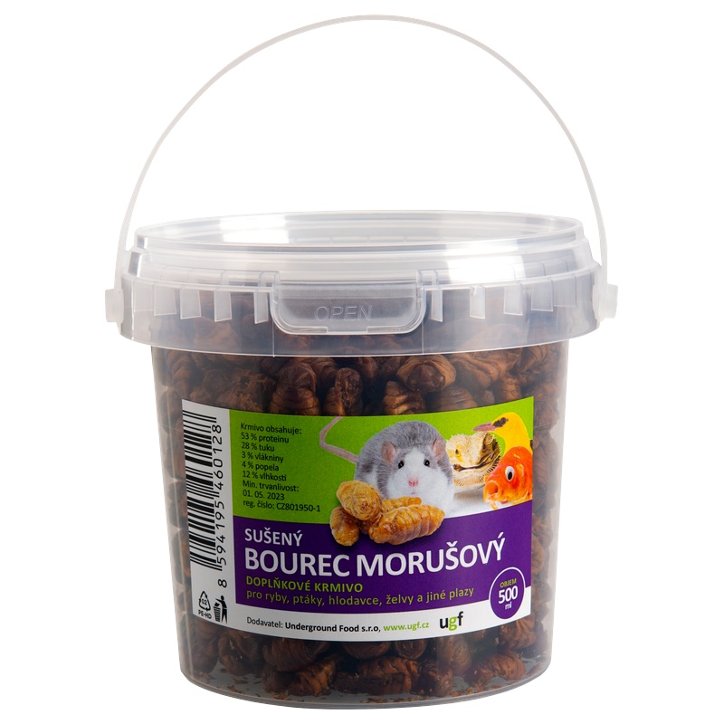 Larvy bource morušového jsou vhodným doplňkem stravy zejména pro kapry KOI, kterým dodají potřebnou energii, podpoří rovnoměrný růst a zbarvení. Dále je vhodný pro hmyzožravé ptáky (exotické, volně žijící, drůbež), drobné savce (potkany, krysy, křečky, ježky, veverky), plazy, ale také pro psy a kočky.