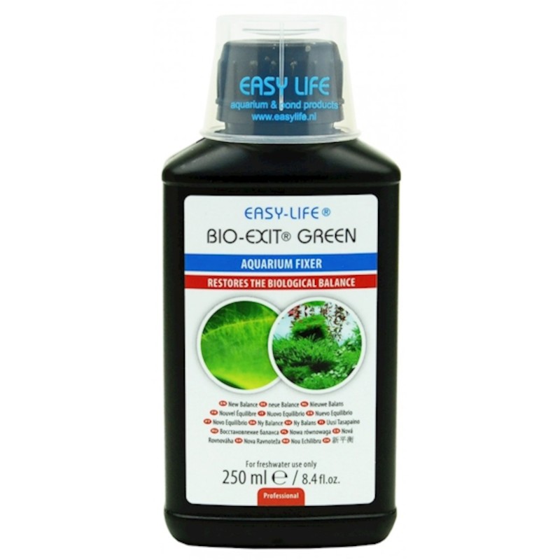 Mikrobiologická nerovnováha v akváriu může způsobit, že rostliny rostou špatně a unikají z nich cukry. Tyto cukry mohou sloužit jako zdroje živin pro nevzhledné řasy (např. řasy vousové, vláknité, kartáčové a hnědé). Přípravek Bio-Exit Green obnovuje tuto biologickou rovnováhu a působí proti ztrátě cukru v rostlinách pomocí jedinečné směsi specifických organických kyselin a růstových stimulátorů.