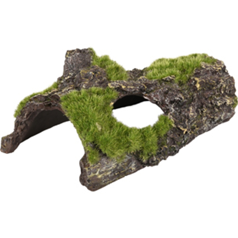 Umělá dekorace do akvária v podobě kůry s mechem.
