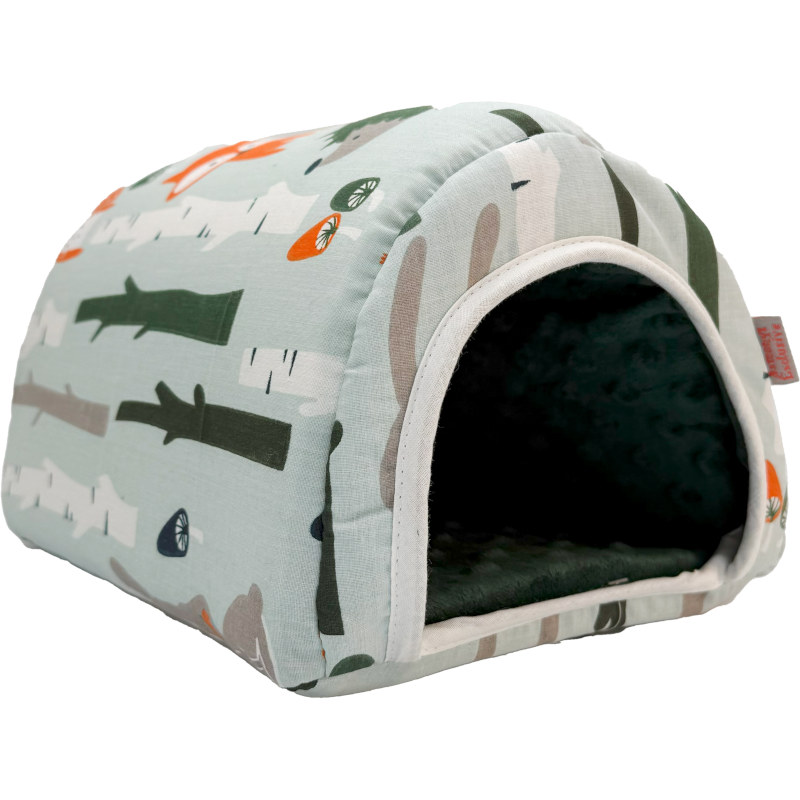 Samohýl Exclusive domek oblouk je prostorným a bezpečným místem pro odpočinek i zábavu morčat a jiných drobných savců. Má půlkruhový tvar a kvůli větší stabilitě i pohodlí jsou jeho stěny a dno zpevněny vrstvou molitanu. Domek je ušitý ze dvou vrstev látky – vnitřek pokrývá měkká a hřejivá minky lahvově zelené barvy, vnější strana je bavlněná s motivem lesních zvířat.