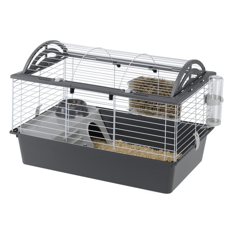 Zajímavý design klece s obloukovou střechou, díky které je klec prostornější a dává zvířatům větší možnost pohybu. Celá střecha je otvíratelná, což usnadňuje čištění klece a manipulaci se zvířetem. V přední stěně klece jsou zasunovací dvířka. Dráty klece ošetřené barvou bezpečnou pro zvířata.