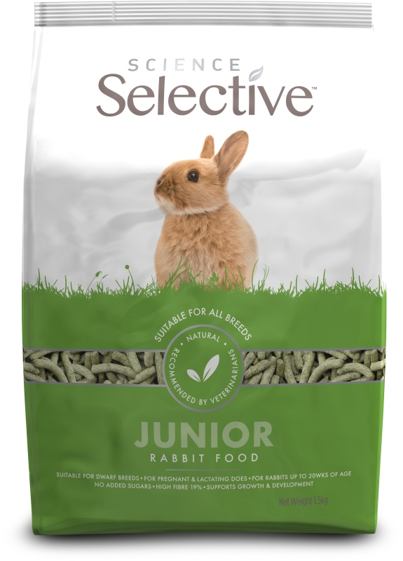 Supreme Science® Selective Rabbit Junior je velice chutné, nutričně kompletní a vyvážené krmivo pro mladé králíky od 4 do 20 týdnů věku a pro březí a kojící samice. Toto špičkové extrudované krmivo s identickými kousky zajišťuje, že si váš králík nebude vybírat z krmiva své oblíbené kousky tak, jako to může dělat u nehomogenních krmných směsí.