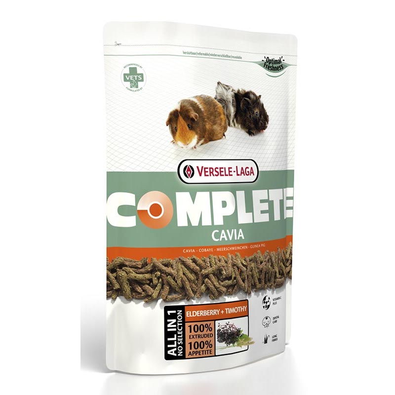 Cavia Complete je 100% extrudované jednosložkové krmivo pro morčata, bohaté na vlákninu rostlinného původu z celých neporušených kousků různých druhů sena. Podporuje přirozenou zubní péči a vyváženou střevní mikroflóru. Obsahuje 1 000 mg/kg stabilního vitaminu C. Obsahuje vlákninu z celých neporušených kousků bojínkového sena. Doplněno o bylinky, plody černého bezu a rozmanité druhy trav.