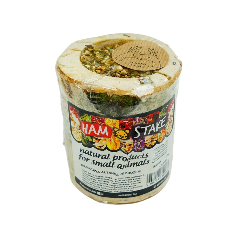 Směs semínek ukrytých v březovém špalku je pro drobné hlodavce zábavným pamlskem, který napomáhá přirozenému obrušování zubů. Špalek je vhodný pro myši, potkany, křečky a pískomily, kterým po vyjedení semínek poskytne kromě vhodného materiálu k okusu i přírodní úkryt a prolézačku.
