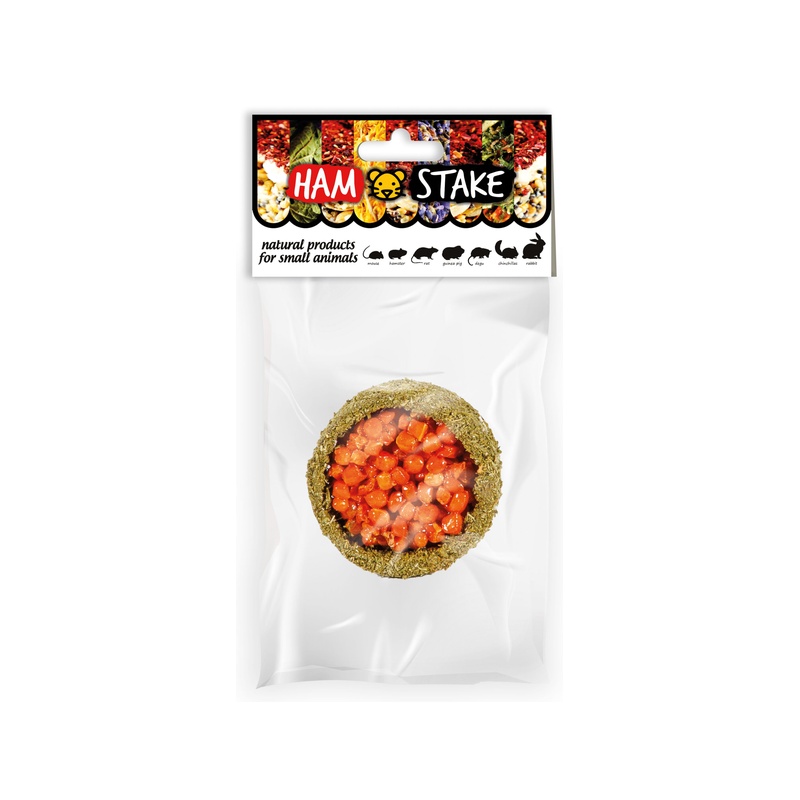 Zdravý a chutný pamlsek připomínající sushi je určený pro králíky, morčata, činčily, osmáky, křečky, potkany, myši a další hlodavce. Kartonový kroužek naplněný mrkví a petrželí poskytuje drobným mazlíčkům nejen chuťový zážitek a zábavu, ale při okusování také napomáhá přirozenému obrušování zubů.