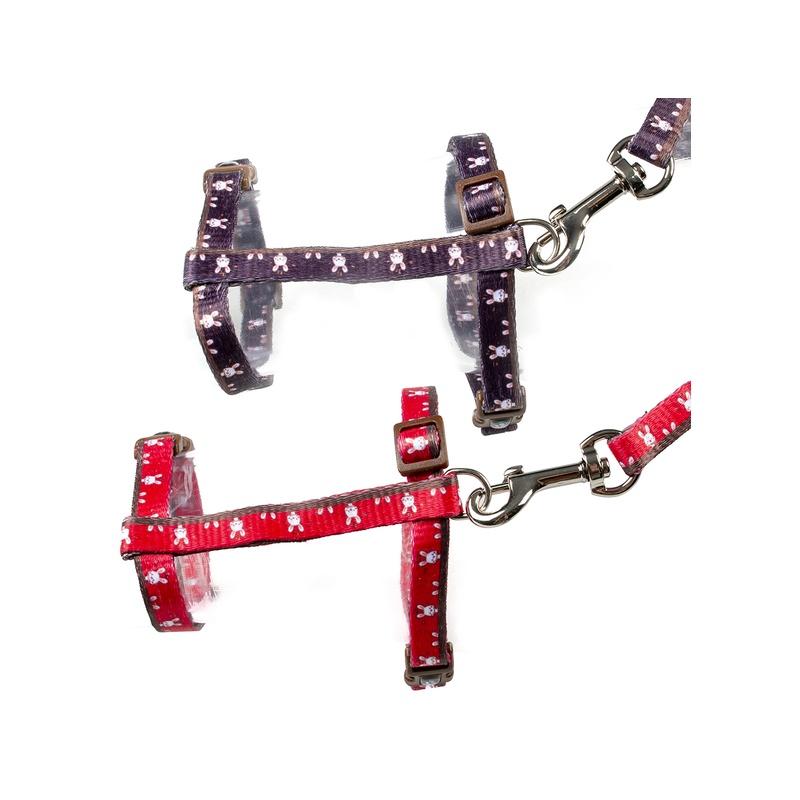 Tento pohodlný postroj lze nastavit tak, aby se perfektně přizpůsobil velikosti králíka. Je ušitý tak, aby optimálně rozložil tlak na tělo zvířete. Postroj má zapínání na přezky a vodítko je opatřeno dostatečně pevnou karabinou.