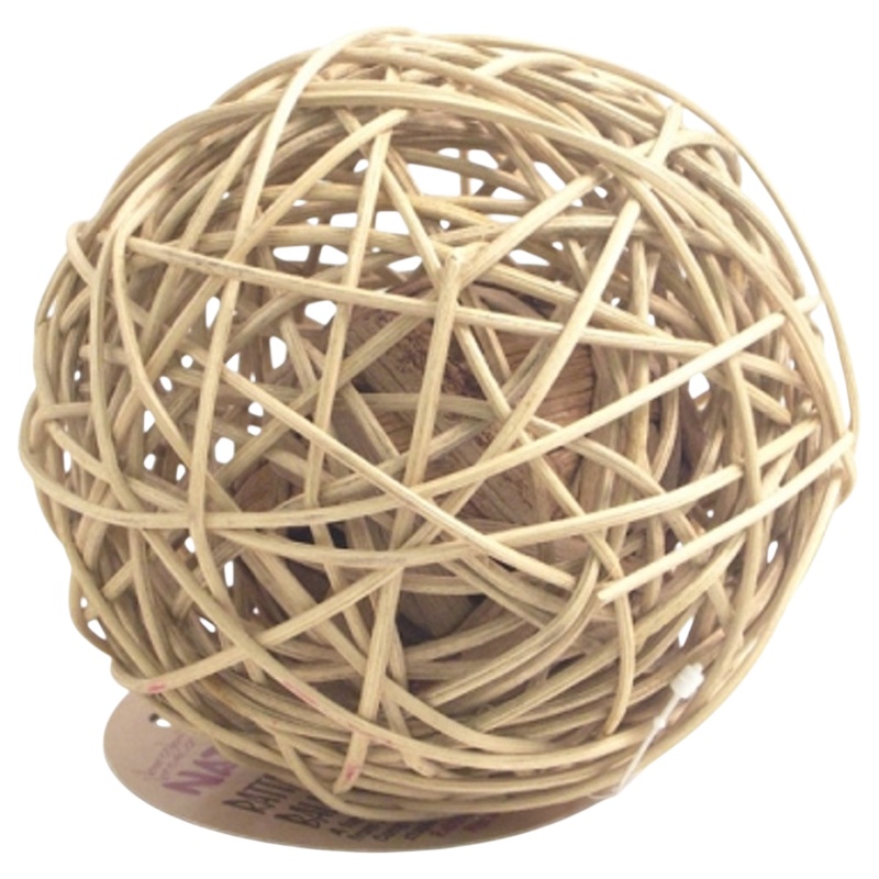 Pletená ratanová koule, uvnitř s kuličkou z listů vodního hyacintu. Hračka pro drobné savce, která zahání nudu a podporuje hlodání, vyrobená ze 100% přírodních materiálů bez použití lepidel, drátů a svorek.