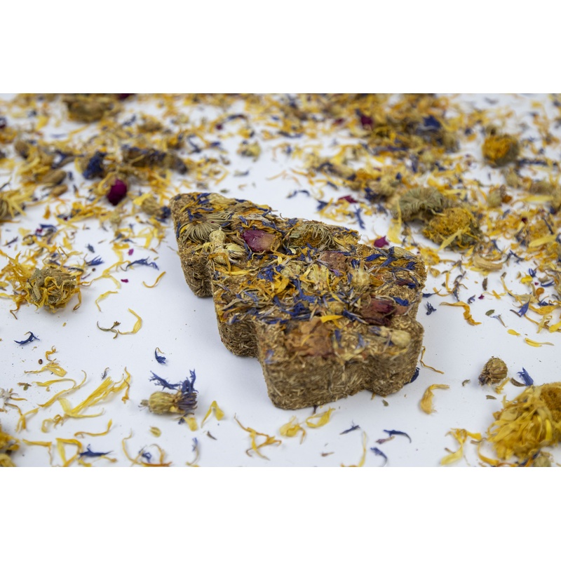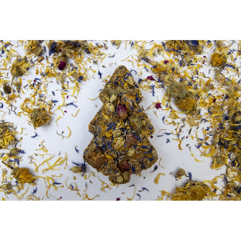 Bezobilný vánoční stromeček s měsíčkem, chrpou a růží je skvělou pochoutkou pro hlodavce a králíky. Nechte své mazlíčky užít si voňavou zimu s jedlou bylinkovou ozdobou plnou chutných a zdravých ingrediencí.