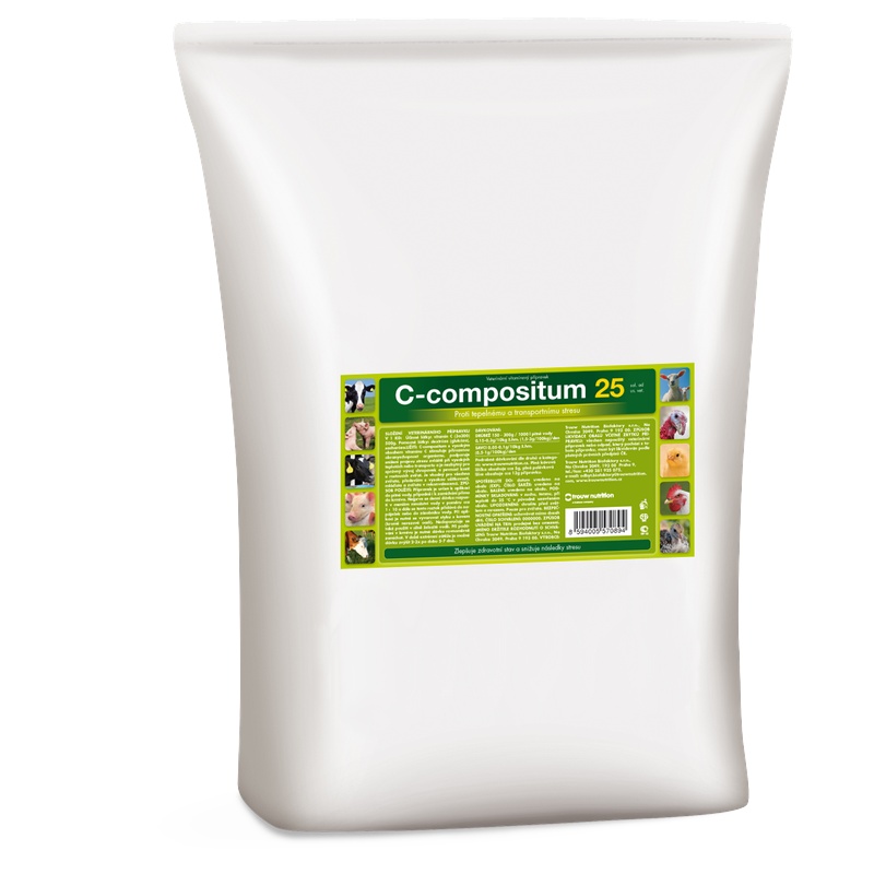 C-compositum 25 stimuluje přirozenou obranyschopnost organismu proti infekcím, podporuje snížení projevů stresu zvláště při vysokých teplotách nebo transportu. Dále je nezbytný pro fyziologický vývoj chrupavek a pevnost kostí rostoucích zvířat. Je vhodný pro všechna zvířata (především s vysokou užitkovostí), mláďata a jedince v rekonvalescenci.