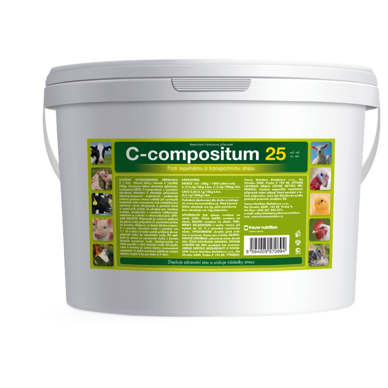 C-compositum 25 stimuluje přirozenou obranyschopnost organismu proti infekcím, podporuje snížení projevů stresu zvláště při vysokých teplotách nebo transportu. Dále je nezbytný pro fyziologický vývoj chrupavek a pevnost kostí rostoucích zvířat. Je vhodný pro všechna zvířata (především s vysokou užitkovostí), mláďata a jedince v rekonvalescenci.