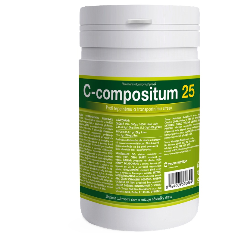 C-compositum 25 stimuluje přirozenou obranyschopnost organismu proti infekcím, podporuje snížení projevů stresu zvláště při vysokých teplotách nebo transportu. Dále je nezbytný pro fyziologický vývoj chrupavek a pevnost kostí rostoucích zvířat. Je vhodný pro všechna zvířata (především s vysokou užitkovostí), mláďata a jedince v rekonvalescenci.
