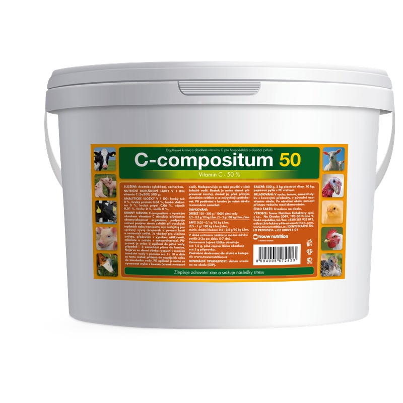 C-compositum 50 stimuluje přirozenou obranyschopnost organismu proti infekcím, podporuje snížení projevů stresu zvláště při vysokých teplotách nebo transportu. Dále je nezbytný pro fyziologický vývoj chrupavek a pevnost kostí rostoucích zvířat. Je vhodný pro všechna zvířata (především s vysokou užitkovostí), mláďata a jedince v rekonvalescenci.