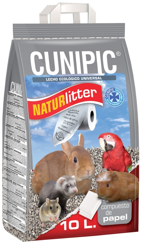 Podestýlka Cunipic Naturlitter je papírová podestýlka pro drobné savce a ptáky s vynikající savostí. Tvoří ji lisované pelety z bezprašného recyklovaného papíru.