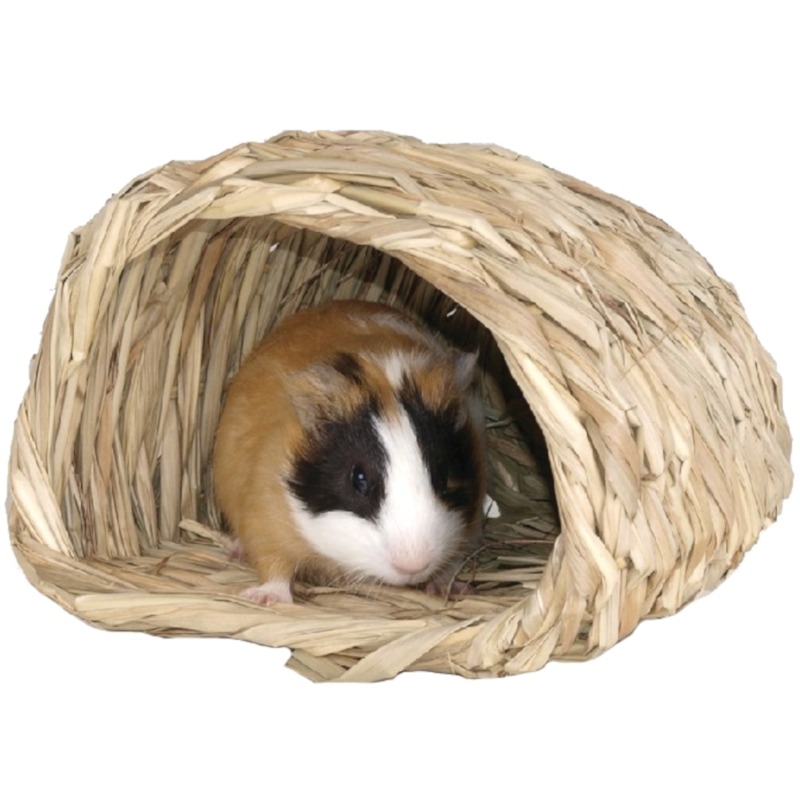 Travní koš pro morčata lze využít jako pelíšek, prolézačku nebo skrýš. Domeček ze sušené trávy je vyroben ze 100 % přírodního materiálu, bez přidaných barviv.