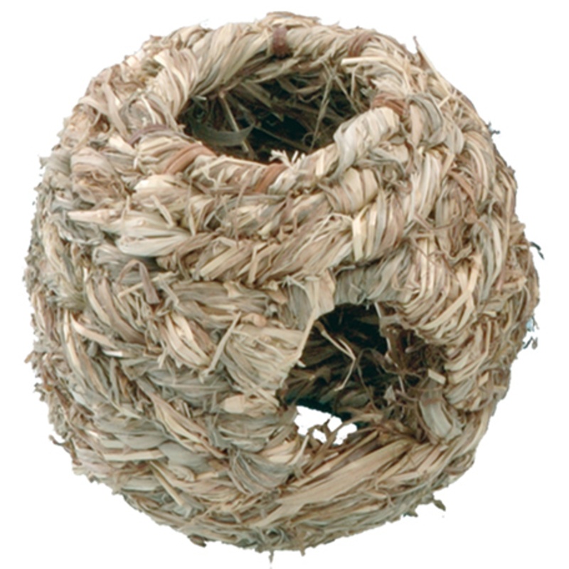 Domek ze sena ve tvaru koule, může sloužiti jako prolézačka.