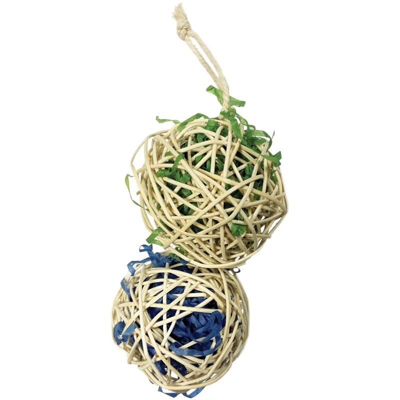Vánoční atmosféru v kleci můžete dotvořit zavěšením velkých vánočních koulí, které jsou plné barevných konfet. Proutěné koule stačí zavěsit v kleci a nechat se překvapit, jak se hlodaví přátelé sami zhostí výzdoby využitím barevných konfet z koulí. Celé koule poslouží jako materiál k okusu a pomůže tak zabavit hlodavé zuby ve svátečních dnech.