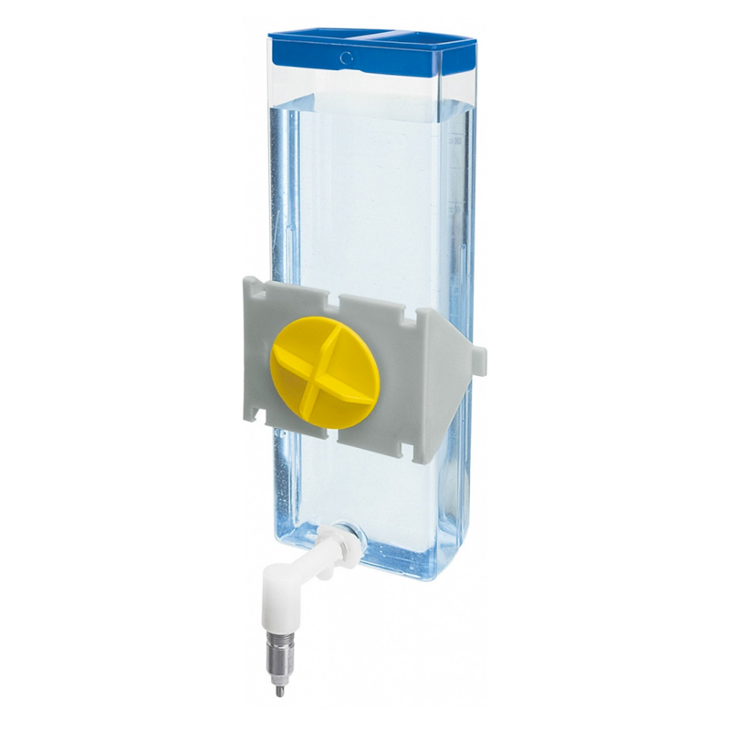 Vrchní poklop umožňuje jednoduché naplnění bez nutnosti vyjmutí napáječky. Na přední straně napáječky je zobrazena měrná stupnice, která Vám usnadní kontrolu při přidávání vitamínů nebo léků do napájecí vody.