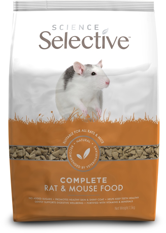 Supreme Science® Selective Rat je velice chutné, nutričně kompletní a vyvážené krmivo pro potkany v každém věku. Toto špičkové extrudované krmivo s identickými kousky zajišťuje, že si váš potkan nebude vybírat z krmiva své oblíbené kousky tak, jako to může dělat u nehomogenních krmných směsí. Zde máte jistotu, že potkan z krmiva získá všechno, co může krmivo poskytnout pro jeho zdraví a pohodu.
