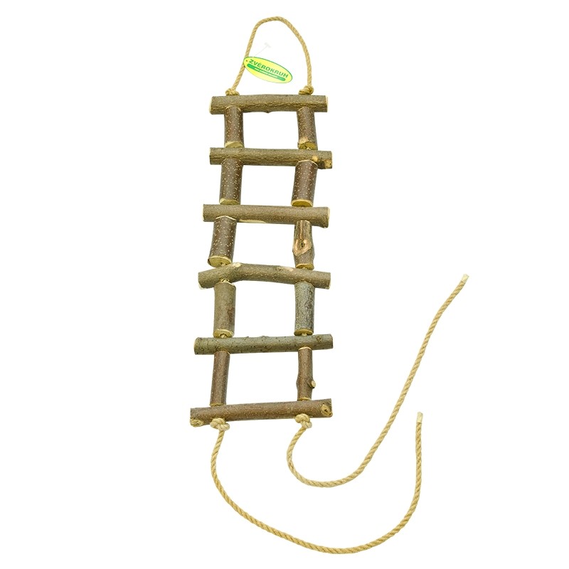 Žebřík lez v kleci umístit různými způsoby (např. jako most, houpačku, žebřík) a tím obohatit zvířatům životní prostředí v kleci a zabavit je.