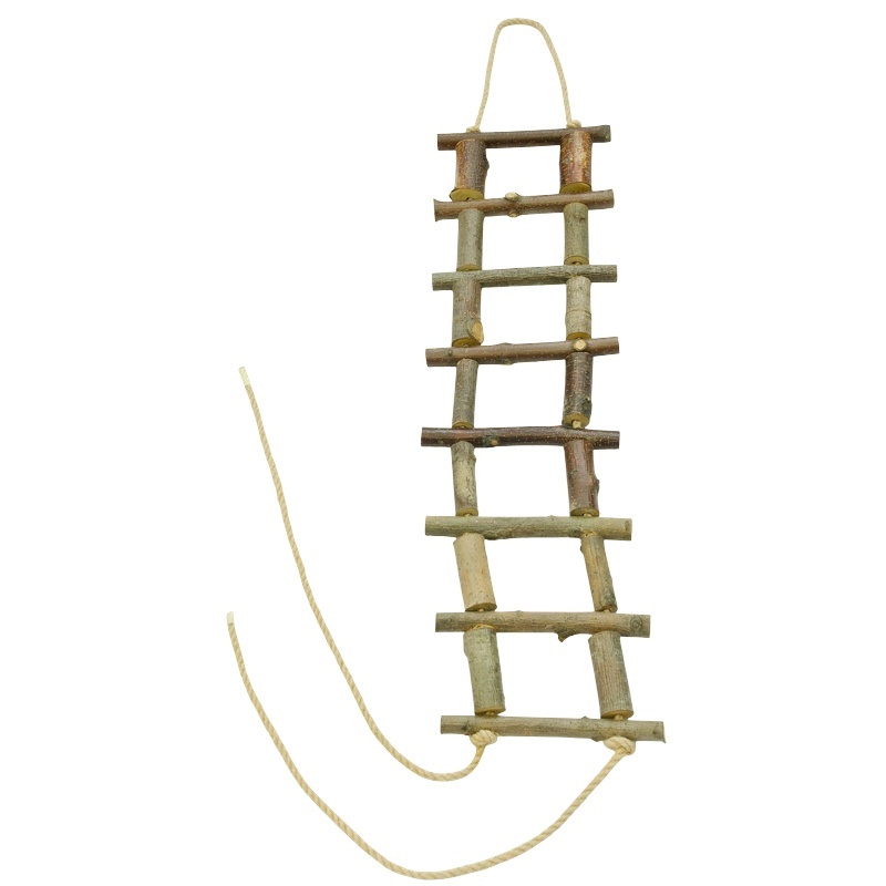 Žebřík lez v kleci umístit různými způsoby (např. jako most, houpačku, žebřík) a tím obohatit zvířatům životní prostředí v kleci a zabavit je.