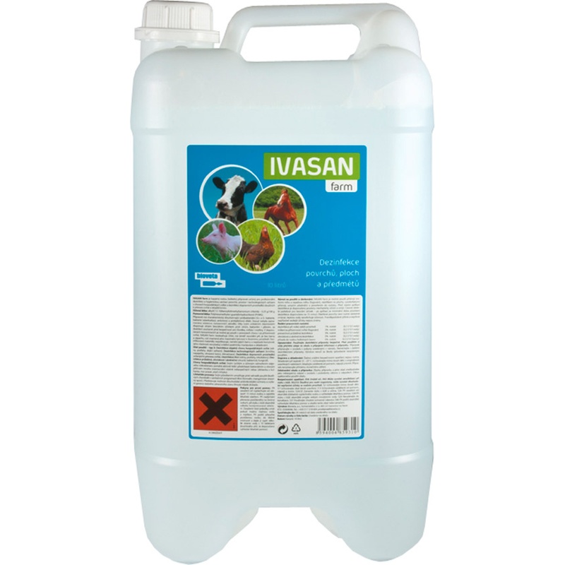 IVASAN Farm je nový dezinfekční vodou ředitelný přípravek určený pro dezinfekci a hygienickou sanitaci povrchů, prostor i technologických zařízení v chovech hospodářských zvířat a dezinfekci dopravních prostředků sloužících k převozu zvířat a skladišť krmiv.