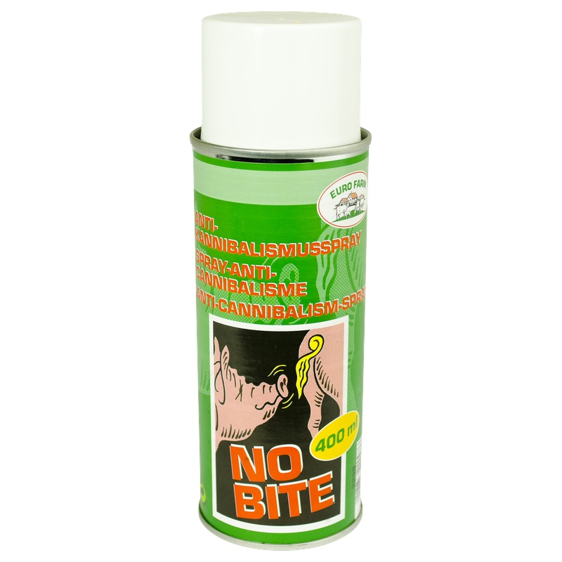 Sprej proti kanibalismu prasat a drůbeže NO BITE 400 ml. Sprej trvale mění pachový profil v okolí prasat nebo drůbeže a tím dokáže vytvořit uklidňující klima v kotcích nebo drůbežárně.