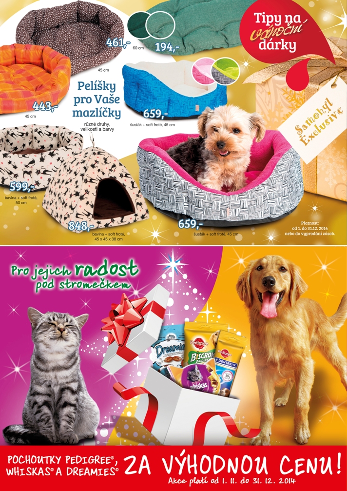 Udělejte radost pod stromečkem svým zvířecím miláčkům – exklusivní hračky a pelíšky, zajímavé akce na krmivo a pochoutky.