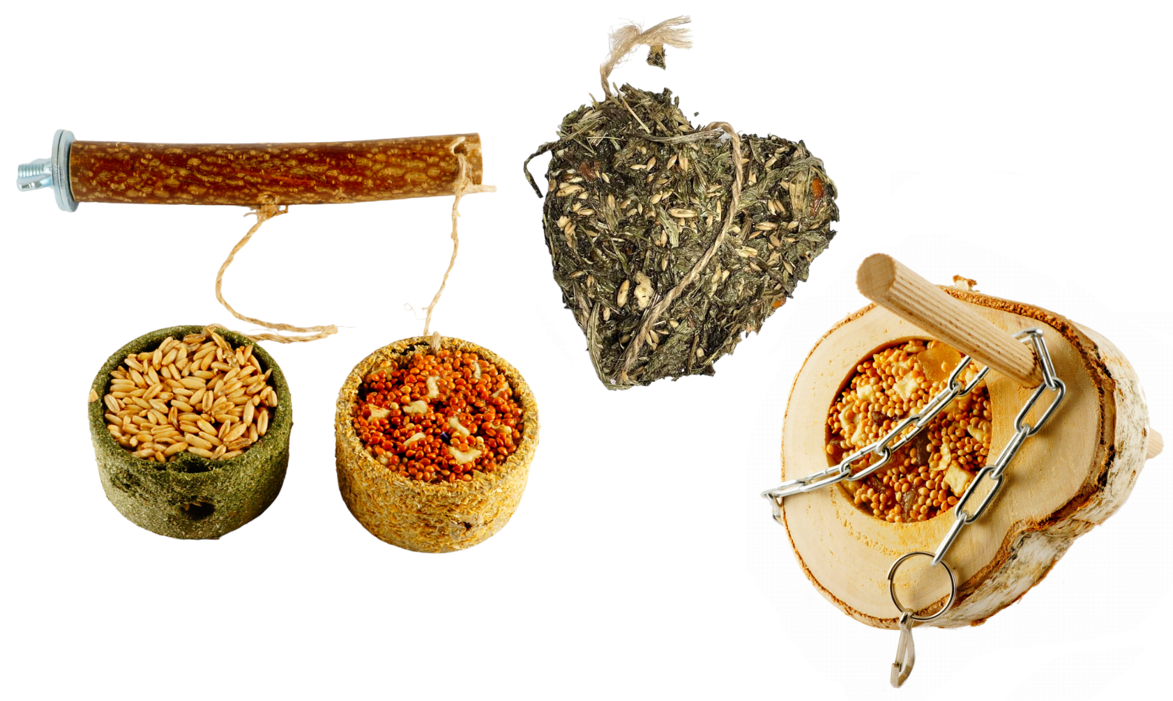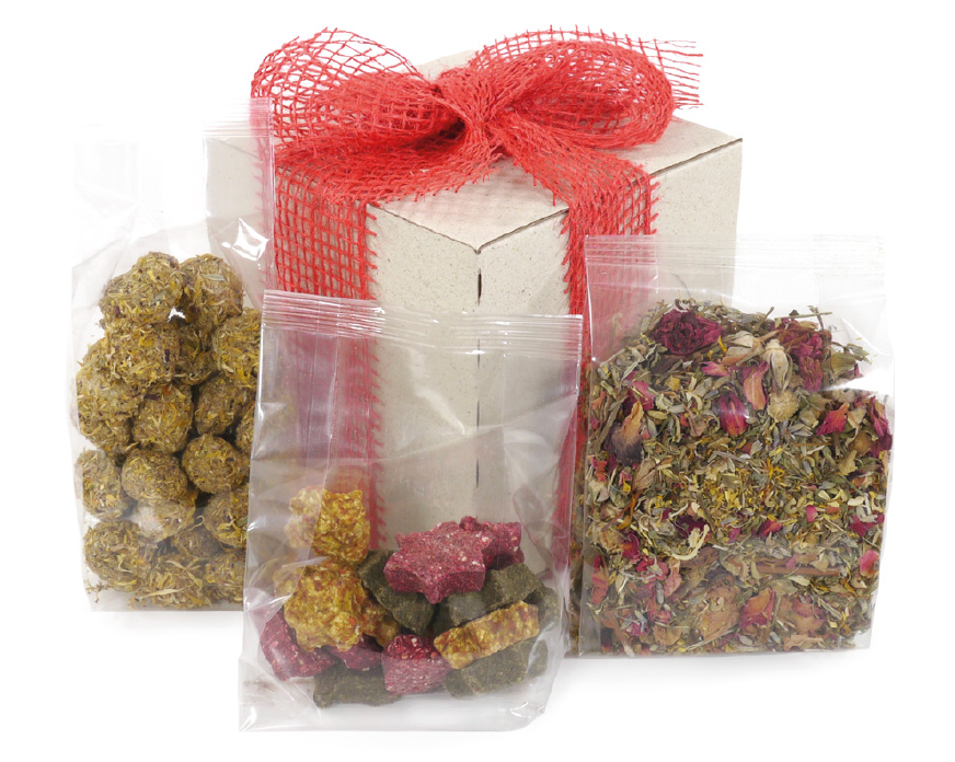 Výzdoba klícky by měla být zároveň krásná i jedlá. A letošní sváteční dekorace od Rosewood jsou opravdu k nakousnutí, ba k sežrání. Na tuhém vánočním stromku z bojínku s mladým ječmenem nebo sobovi z pšenice s ovesnými otrubami si drobní mazlíčci mohou navíc obrušovat zuby. Měkčí mlsání nabízí senný stromek s měsíčkem, růží a chrpou nebo „sobí mix“ ovesných vloček s bylinkami. Vše 100% přírodní!
