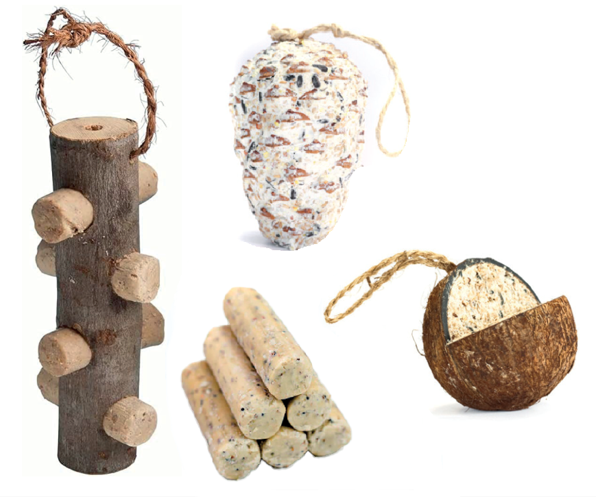 I volně žijící ptáci si zaslouží něco do zobáčků! Přes zimu to pro ně může být dokonce životně důležité. A s přírodními závěsnými krmítky od Kejo je můžete vykrmit opravdu poctivě. Ke kokosům a obří šišce s náplní z hovězího loje se směsí obilovin a semen letos přibude v naší nabídce šikovná novinka: špalek s lojovými suky z téže směsi obohacené navíc larvami bráněnky a vápníkem. Další předností tohoto krmítka je, že když ptáci náplň vyzobou, můžete pořídit nové suky a krmítko jimi znovu „prošpikovat“.