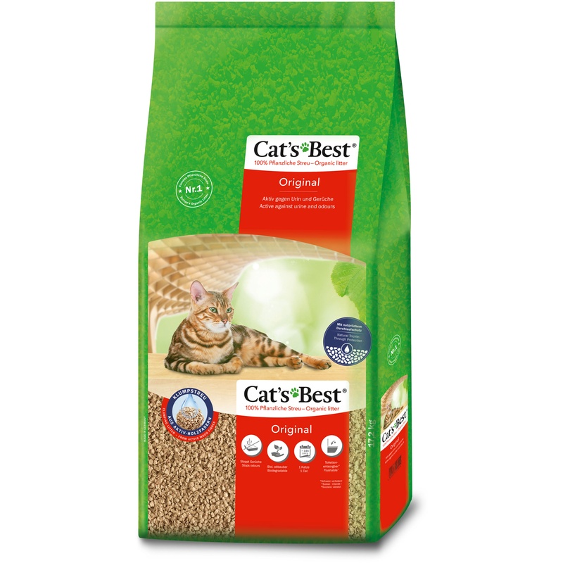 Hrudkující dřevitá podestýlka Cat's Best Original má výrazně vyšší užitkovost než běžné podestýlky a díky tomu je také úspornější: v toaletě vydrží 5–7 týdnů bez nutnosti kompletní výměny. Peletky lisované z nejjemnějších dřevních vláken absorbují tekutinu až v sedminásobku svého objemu, skvěle pohlcují pachy a příjemně voní i bez umělých přísad.