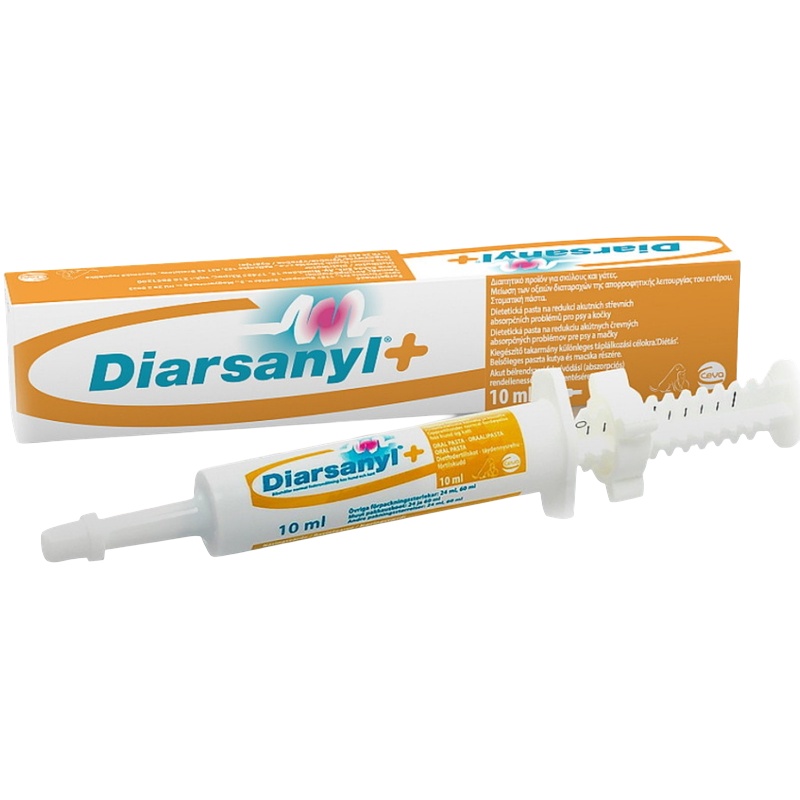 Diarsanyl pasta zelenohnědé barvy a krémové konzistence je díky příjemné chuti a vůni dobře přijímána většinou psů a koček. Účinné látky obsažené v pastě zabezpečují udržování normálních funkcí trávicího traktu. Při průjmu jakéhokoliv původu je poškozena téměř vždy mucinová vrstva střevní sliznice. Aby se zabránilo dalšímu poškození sliznice, vytváří montmorilonit obsažený v pastě ochranou vrstvu na povrchu poškozené sliznice a současně pomáhá při regeneraci přirozené mucinové vrstvy. Montmorilonit absorbuje toxiny, bakterie, viry a jiné škodlivé molekuly, takže se nemohou dále vstřebávat a škodit organismu. Elektrolyty obsažené v produktu nahrazují esenciální elektrolyty, které organismu chybí v důsledku průjmu. Dextróza představuje lehce dostupný externí zdroj energie bez odčerpávání energie organismu. Jednoduché a praktické použití chutné pasty přispívá ke kladnému výsledku léčby.