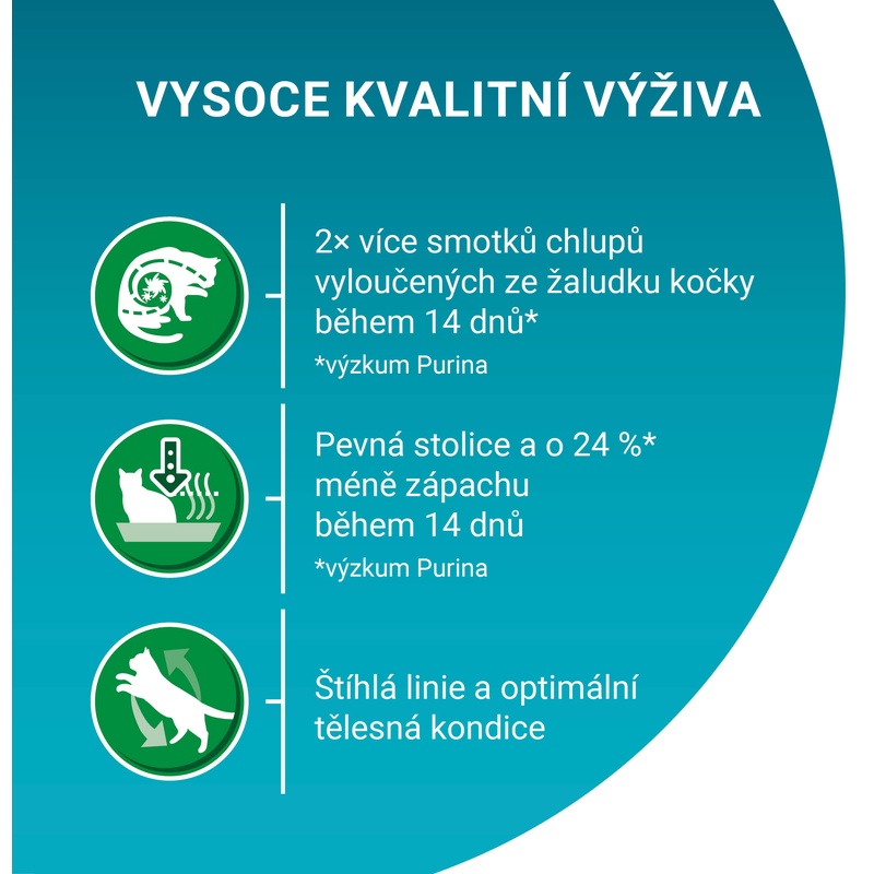 • 2× více smotků chlupů vyloučených ze žaludku kočky během 14 dnů*,