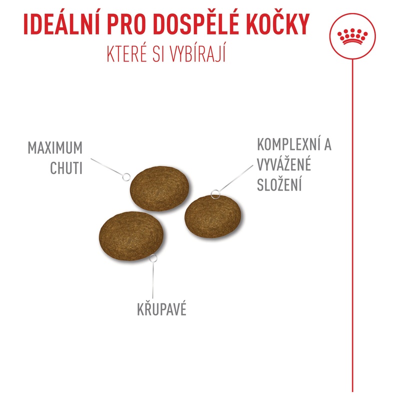 Granule pro kočky: Kompletní krmivo pro vybíravé dospělé kočky.