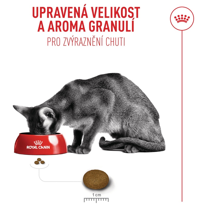 Royal Canin Fussy Exigent je kompletní suché krmivo vyvinuté speciálně pro dospělé kočky s velmi vybíravým apetitem. Receptura je nutričně vyvážená a vysoce chutná díky unikátní kombinaci atraktivních vůní a křupavé textury, která zaujme i ty nejnáročnější jedlíky. Granule s energeticky bohatým složením a vysokým obsahem bílkovin pomáhají udržovat zdravou tělesnou hmotnost i u koček, které jedí méně. Složení navíc podporuje zdraví močového systému a je vhodné i pro sterilizované kočky.