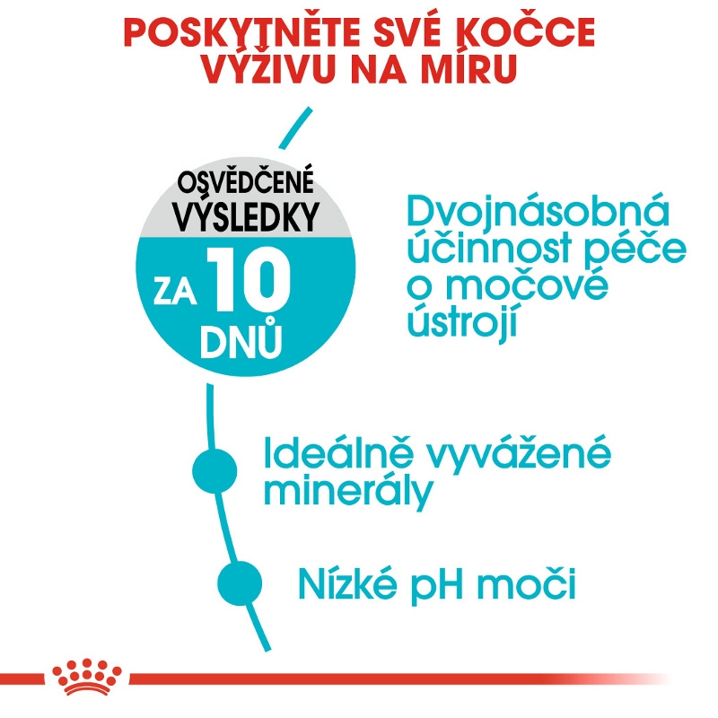 Jaké jsou klíčové výhody tohoto cíleného řešení výživy? URINARY CARE je přesně vyvážená výživová receptura, která pomáhá udržovat zdraví močových cest. Udržuje zdravou koncentraci moči regulací minerální rovnováhy a udržováním nízkého pH moči, což vede k méně koncentrované moči. Exkluzivní receptura vytváří močové prostředí méně příznivé pro tvorbu močových kamenů.