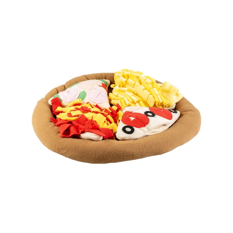 Čmuchací dečka v podobě pizzy je skvělé místo pro schování suchého krmiva či pamlsků. Interaktivní hračka stimuluje lovecký instinkt psa nebo kočky, zabaví je při hledání pamlsků a zabraňuje hltání potravy, čímž pomáhá předcházet problémům s váhou. Spodní strana má protiskluzovou úpravu.