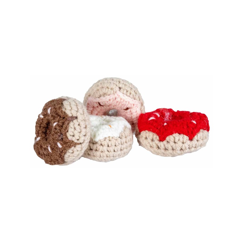 Malá hračka ve tvaru koblížku upletená z měkké vlny je ideálním náčiním pro každodenní hru. Díky své velikosti a lehkému materiálu je snadno polapitelná a vhodná pro lov i zápasení. Hračka podporuje přirozený lovecký instinkt kočky, motivuje ji k pohybu a pomáhá ji udržovat ve fyzické i mentální kondici.