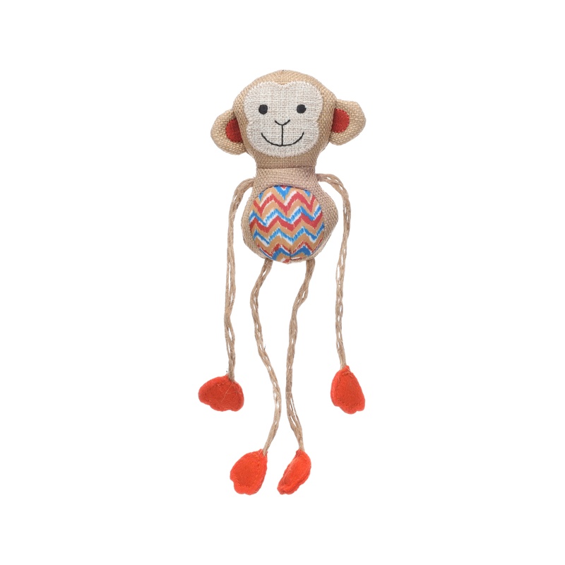 Textilní hračka ve tvaru opice kombinuje dva druhy látek – plátno a tkaninu s výrazným chevronovým vzorem. Uvnitř hračky je catnip (šanta kočičí), jehož vůně povzbuzuje ke hře až 70 % koček. Lovecký instinkt podněcují také dlouhé ruce a nohy z provázků zakončených plyšem.