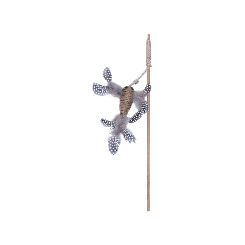 Vábnička s rukojetí ze dřeva láká ke hře rolničkou a jutovým ptáčkem s peříčky. Hračka stimuluje lovecké instinkty a posiluje pouto mezi vámi a vaší kočkou při společné, interaktivní hře. Je vyrobena z bezpečných přírodních materiálů a vhodná pro kočky všech věkových kategorií.