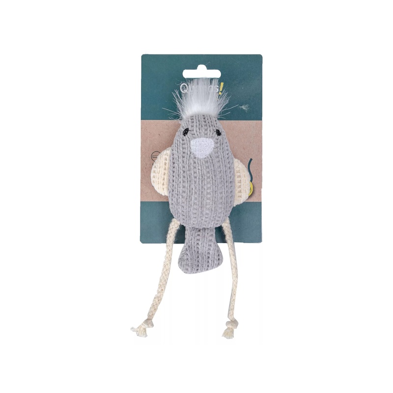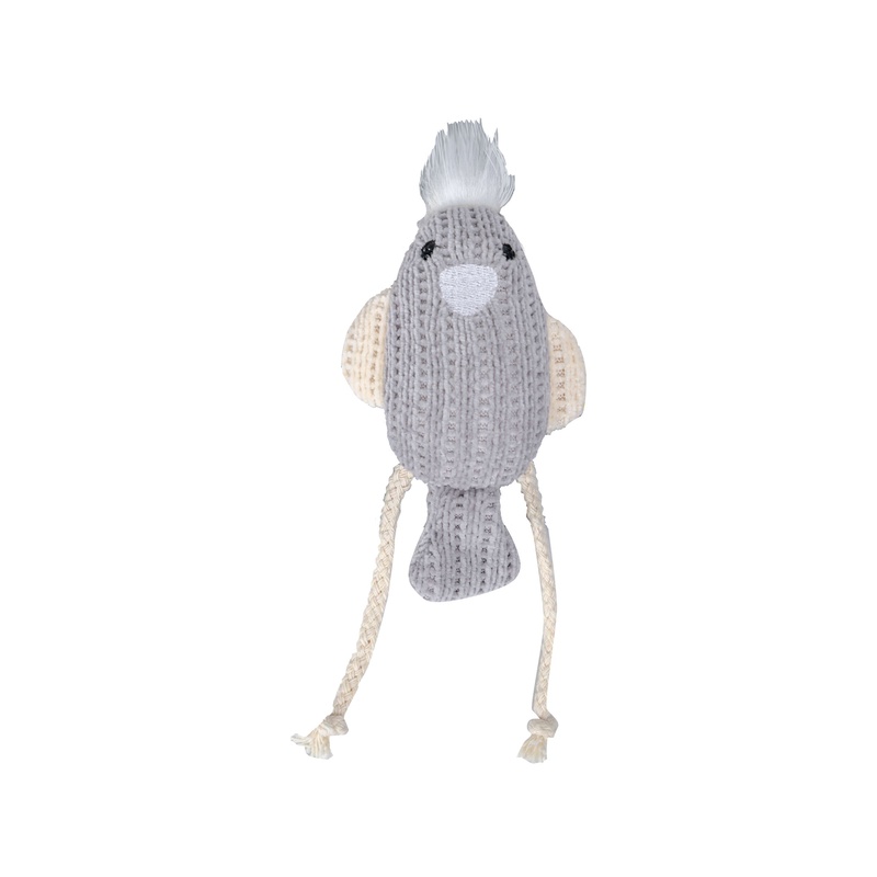 Hračka ve tvaru ptáčka, vyrobená z měkkého úpletu, láká ke hře veselým chocholem a dlouhýma nohama z provázků. Použité materiály stimulují přirozené lovecké instinkty kočky. Hračka je vhodná pro samostatnou i společnou, interaktivní hru.