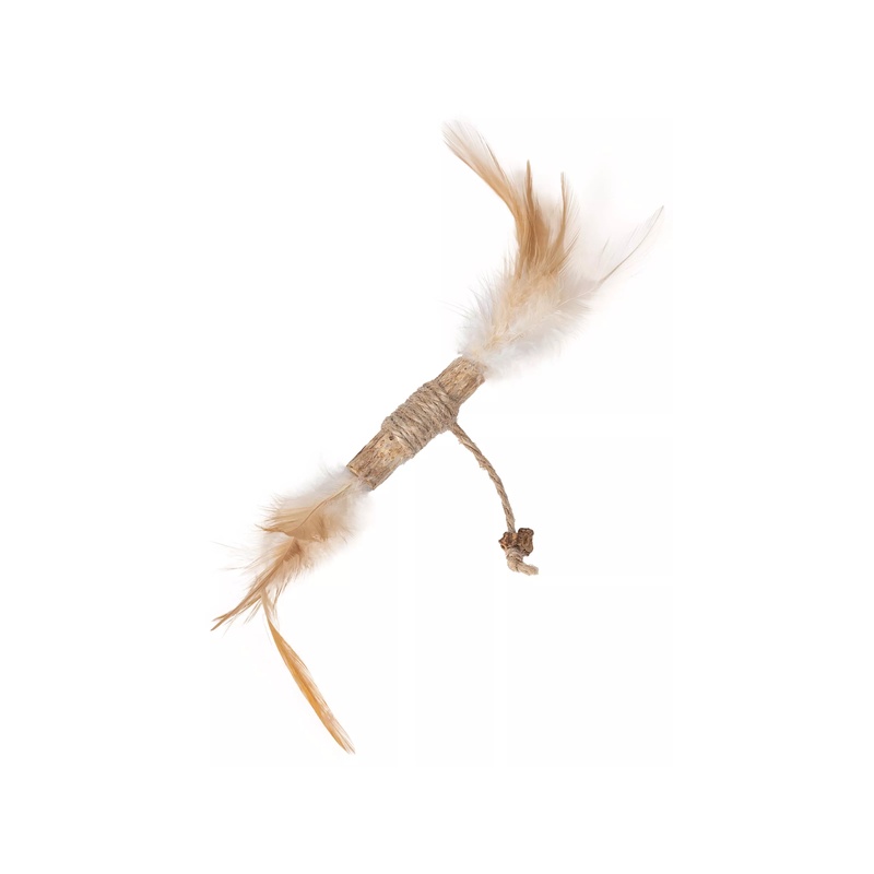 Hračka ve tvaru válečku je vyrobená ze dřeva a provázku a na obou koncích ozdobená peříčky. Použité materiály podporují aktivní hru a stimulují přirozené lovecké instinkty kočky. Jejich okusování navíc pomáhá odstraňovat zubní plak a podporuje tak zdraví ústní dutiny. Hračka je vhodná pro kočky všech věkových kategorií.