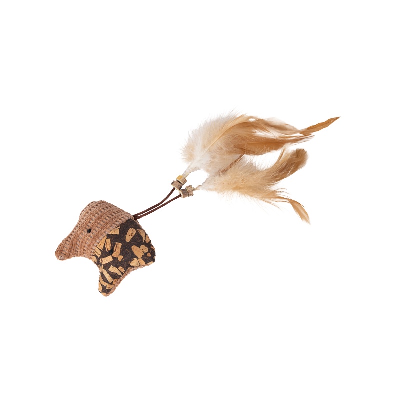 Hračka ve tvaru kočičí hlavy kombinuje měkký úplet, jutu a korek a pro ještě větší vzrušení ze hry je doplněná peříčky na provázcích. Různorodé textury a přírodní materiály stimulují přirozené lovecké instinkty kočky a podněcují ji k aktivní hře.