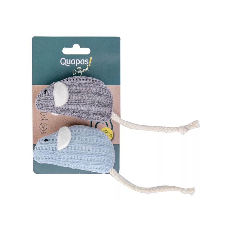 Dvě hračky ve tvaru myšek jsou vyrobené z měkkého úpletu, mají plyšovou výplň a pro ještě větší vzrušení ze hry dlouhý ocásek z provázku. Použité materiály stimulují přirozené lovecké instinkty kočky. Hračky jsou vhodné pro samostatnou i společnou, interaktivní hru.