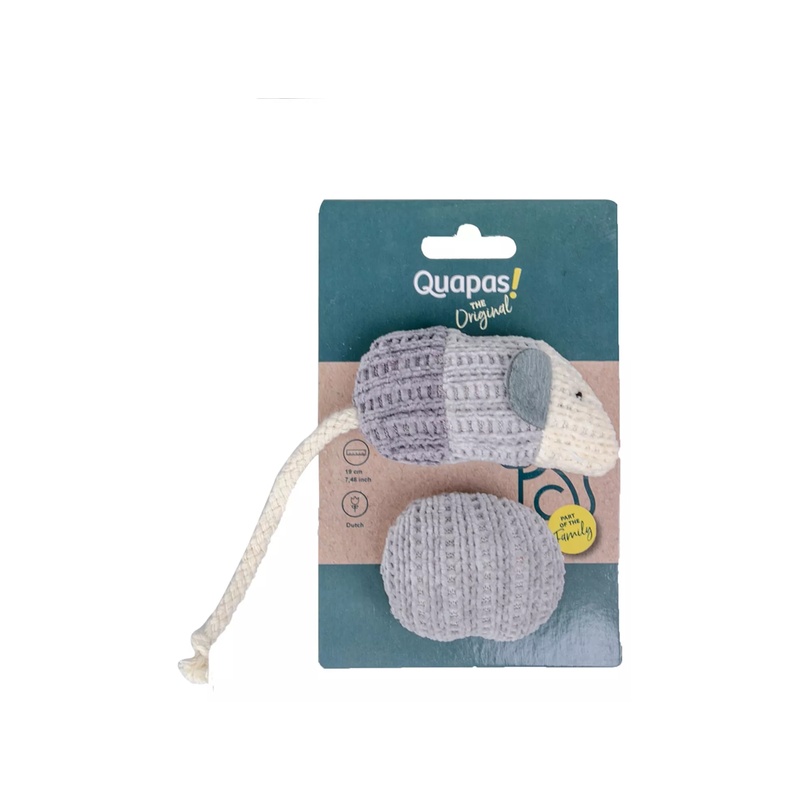 Dvě hračky – myška a míček – jsou vyrobeny z měkkého úpletu. Použité materiály stimulují lovecké instinkty kočky. Myška s dlouhým ocasem z provázku je vhodná i pro společnou, interaktivní hru.