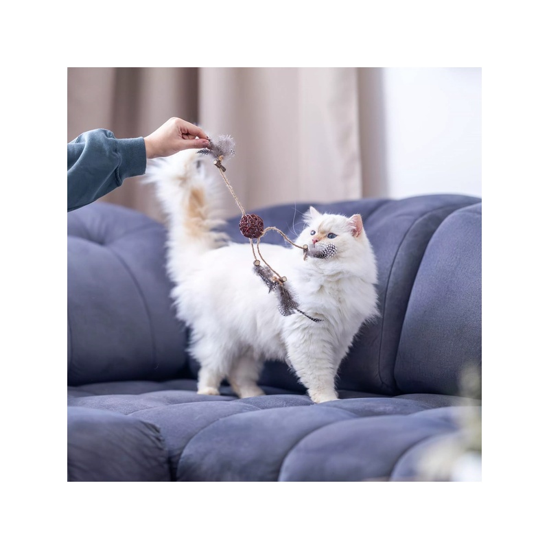 Hračku tvoří ratanový míček, k němuž jsou připevněné jutové provázky s peříčky a dřívky matatabi (japonského kiwi), jehož vůně je pro mnoho koček přitažlivá. Různorodé textury a přírodní materiály stimulují přirozené lovecké instinkty kočky a podněcují ji k aktivní hře.
