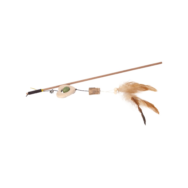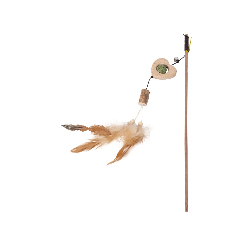 Vábnička s dřevěnou rukojetí láká ke hře závěsem, na němž je připevněná rolnička, dřevěné srdíčko s catnipovou kuličkou, korek a peříčka. Hračka stimuluje lovecké instinkty a posiluje pouto mezi vámi a vaší kočkou při společné, interaktivní hře. Je vhodná pro kočky všech věkových kategorií.