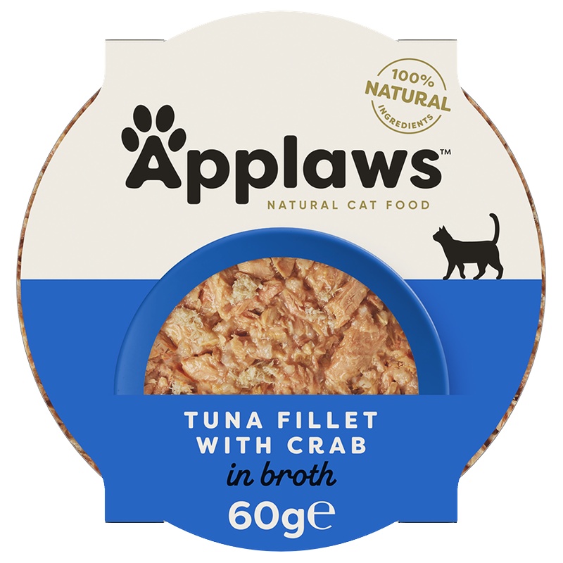 Applaws je lehce stravitelné, nutričně vysoce hodnotné, přirozeně bezlepkové, hypoalergenní a hlavně velmi chutné krmení! 100% přírodní krmivo bez umělých konzervačních látek, barviv nebo dochucovadel. Kvalitu poznáte na první pohled – skrz průhledný obal sami vidíte přirozenou konzistenci krmiva v podobě celých kousků tuňáka a krevetek. Ryby pocházejí z oceánů a jsou loveny způsobem, který neohrožuje delfíny (Dolphin Friendly Product).