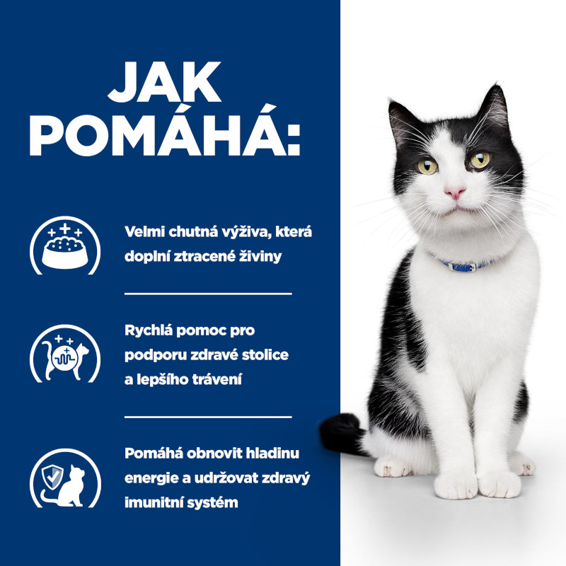 Nutriční řešení pro kočky s gastrointestinálními poruchami a kočky v rekonvalescenci.