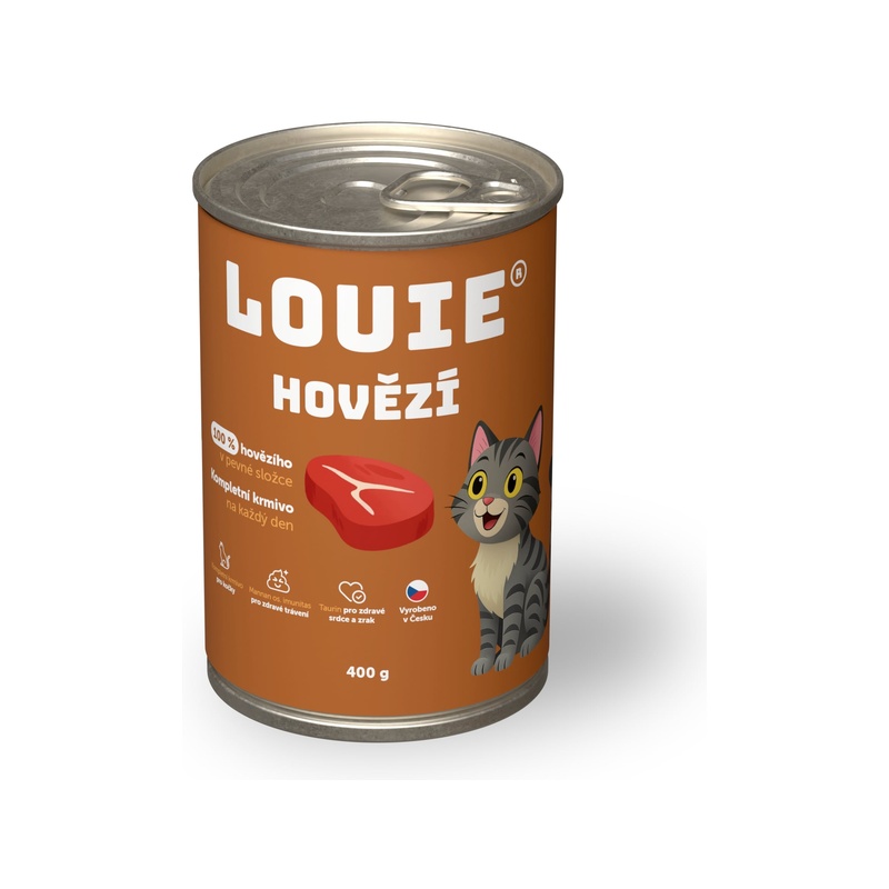 Šťavnaté kompletní krmivo obsahuje 100 % hovězího masa v pevné složce. Konzerva je obohacená taurinem pro zdravé srdce a zrak a prebiotiky – zdraví prospěšnou rostlinnou vlákninou – ve formě mannanoligosacharidů (MOS) a fruktooligosacharidů (FOS), které posilují střevní mikroflóru. Krmivo tím přispívá k normální funkci trávicího a imunitního systému.