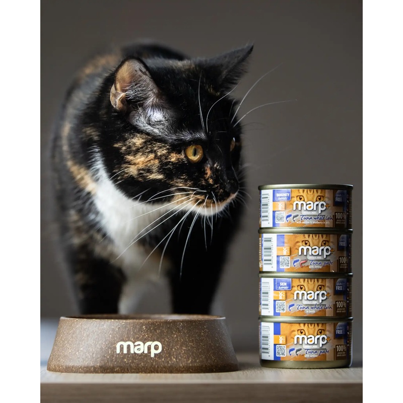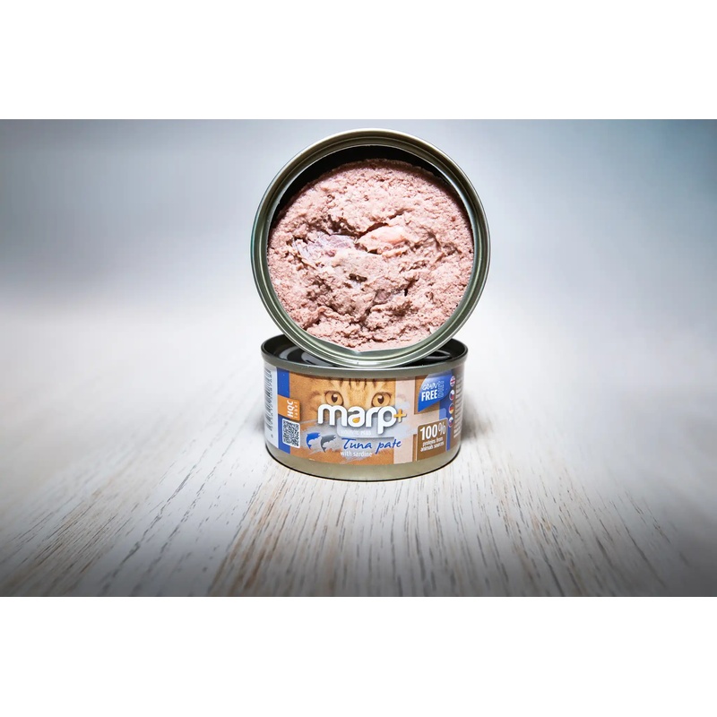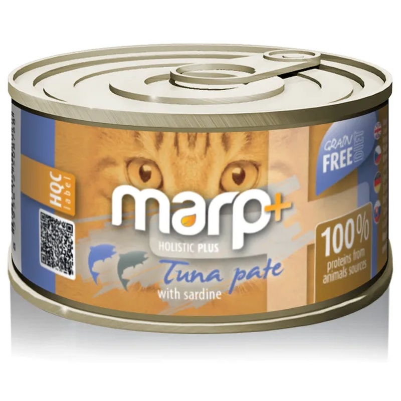 Konzervy Marp Holistic Plus s lahodným tuňákovým paté a sardinkami jsou vhodné pro koťata a dospělé kočky všech plemen. Doplňkové vlhké krmivo Marp Holistic Plus respektuje výživové potřeby kočky coby výlučného masožravce, a proto obsahuje 100 % bílkovin ze živočišných zdrojů.